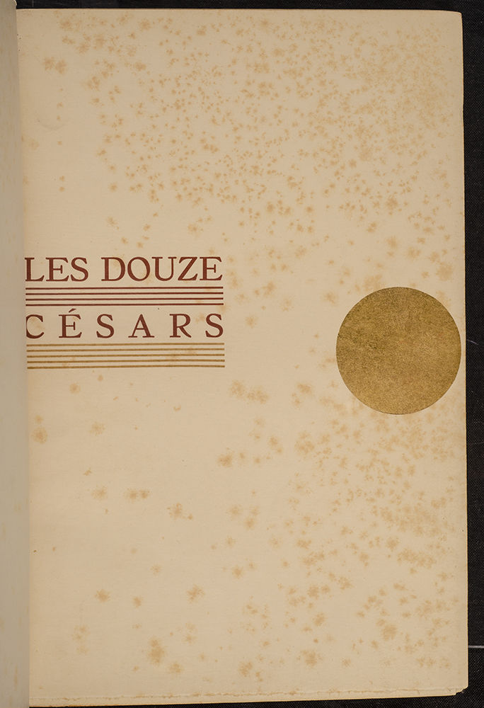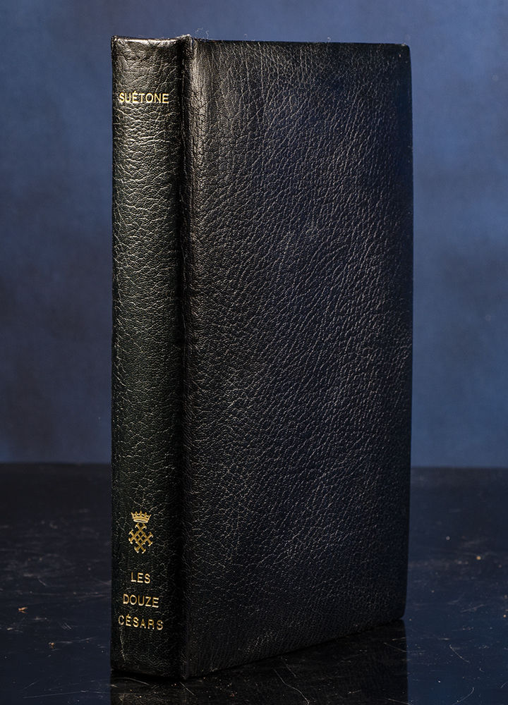 Francois-Louis Schmied (1873-1941) was one of the most important, original, and active figures in the world of artists' books. He was born and studied in Geneva, moved to Paris at age 22 to make a living as a wood engraver, and joined the French Foreign Legion in his mid-40s, losing an eye in the Great War. It was after 1919 that Schmied began to focus primarily on the production of "editions de luxe," and in the mid-1920s, he and his eldest son Theo managed an atelier that issued a distinguished series of sumptuous works in very small editions, largely for members of elite French bibliophile societies. The Roman biographer Suetonius (69-after 122 AD) served for some years as a secretary to Hadrian, but he was dismissed for an indiscretion involving the emperor's wife, after which he retired from public life in order to devote himself to literature. He wrote a considerable number of biographies as well as works on antiquities, natural science, and even linguistics, but all that have survived are his "Lives of Famous Men" (in part) and the present "Lives of the Twelve Caesars." Our work contains biographies of the Roman rulers from Julius Caesar through Domitian, with formulaic descriptions of family history, public career, physical appearance, private life, and vices and virtues. The work is of great interest to us mainly because of its material relating to the emperors' often scandalous private lives, material to which Suetonius had access in the imperial archives, and material that would otherwise have been lost.