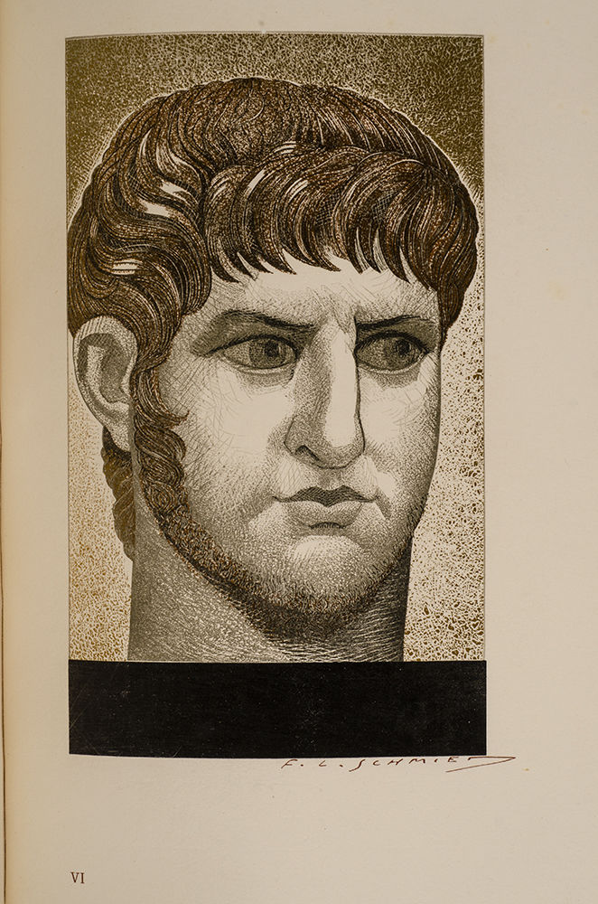 A wonderful example of the highly appealing Schmied livre d'artiste version of Suetonius' classic biographies of the First Twelve Roman Emperors, originally written in 121 A.D.