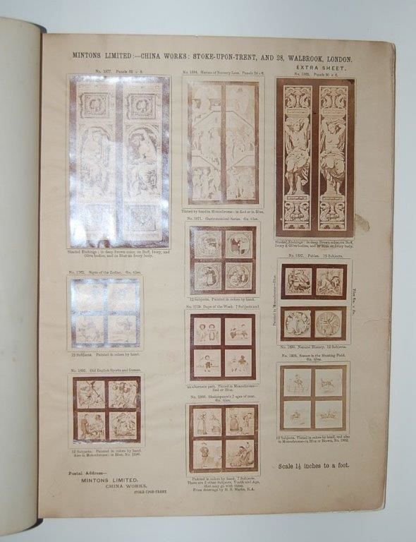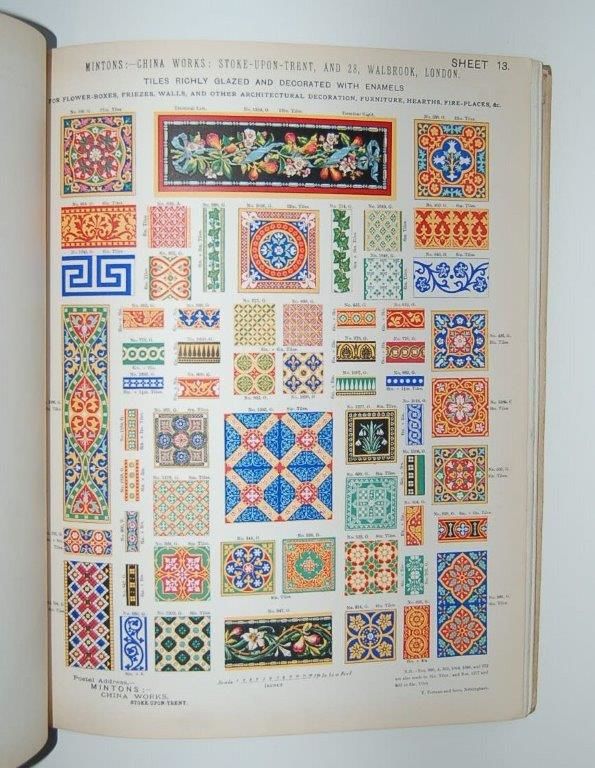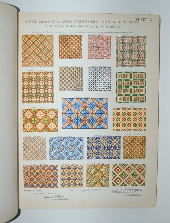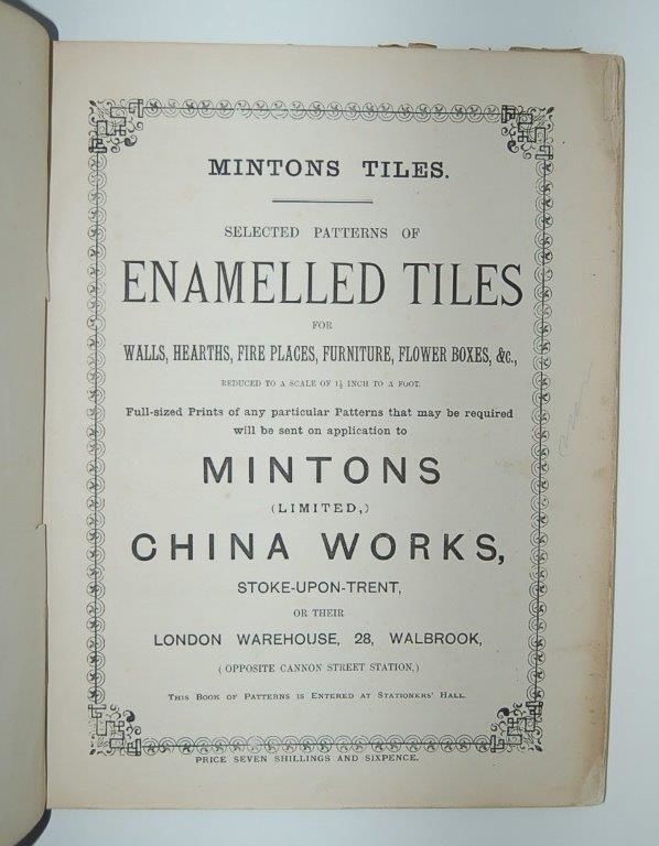 Mintons Tiles. Selected Patterns of Enamelled Tiles for Walls, Hearths, Fire Places, Furniture, Flower Boxes, &c., Reduced to a scale of 1½ inch to a foot.