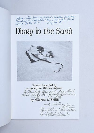 San Antonio, Texas: Leland's Publishing,, 1992. Many of the hostile events revealed will give the reader an understanding of the existing problems in the Middle East First and only edition, inscribed by the author on the title page, "To Mrs Vida Brousard, hope that this book brings back memories, Maurice L Smith, and wishing you the best in the future, God (Allah) bless". A scarce and fascinating memoir by a US Army Special Forces advisor covering his time in "the land of sand and oil", Kuwait and Saudi Arabia; with only eight entries in WorldCat, all in American libraries. Published two years after the Iraqi invasion of Kuwait, the present work serves as a highly relevant educational guide to a country recently brought to the attention of the American public for the first time by the Gulf War. Working from 1977 to 1980, Smith's role as an American advisor was to "provide advice to the Kuwait Armed Forces on requisitioning, receipt, distribution, and issue of all US Army procured equipment"; he also worked as an advisor to the Saudi National Guard's modernization programme. A detailed and sensitive work, presented in a straightforward style, Smith's memoir finishes with an assessment of the prospects for peace in the region, determining that there is "no solution, no common ground, no peace" in the Middle East (p. 104). However, in the tumultuous years following the end of the Cold War and the West's victory against Iraq in 1991, Smith's unassuming work represents a conscientious American perspective on the region based on his experiences living and working there. Smith's roles put him at the forefront of military ties between the Gulf and the West at a time of enormous military spending by the Gulf states. His position saw him working with senior Kuwaiti and Saudi officials, and this work presents his insider's perspective on Kuwaiti affairs, including the succession of Sheikh Jaber Al Ahmad Al Sabah in 1977, Kuwait's role in the Israel-Palestine conflict, relations with Iraq and other Gulf states, and also key regional events such as the Iranian Revolution, the Iran-Iraq War, and the controversial Israel-Egypt detente. Smith's memoir is also a fascinating document of social relations and politics in Kuwait, detailing the experiences of himself and his family as early expatriates in the Gulf. Smith discusses local encounters that expose him to the moral and legal ambiguities surrounding religious customs, such as alcohol consumption and prayer, and he compares Kuwaiti and Saudi social and religious attitudes. Smith's identity as an African American also exposes him to local tensions surrounding race, as well as concerns about the increasing US role in military and political affairs in the Gulf. The recipient of this copy was Vida Elizabeth Broussard (1913-2009), a prominent Baton Rouge, Louisiana, resident and friend of the author, whom she met while they both lived in Saudi Arabia. This copy also includes an additional gift inscription to the head of the title page, "Mom: This man is retired military and my wonderful substitute when I am out. He is loved by the kids. Elizabeth", which is presumably by Vida's daughter, Elizabeth. Octavo. With 3 maps of Africa, the Middle East, and Saudi Arabia to rear. Original black and white photographic wrappers, lettered in black. A few creases and marks to wrappers, a near-fine copy.