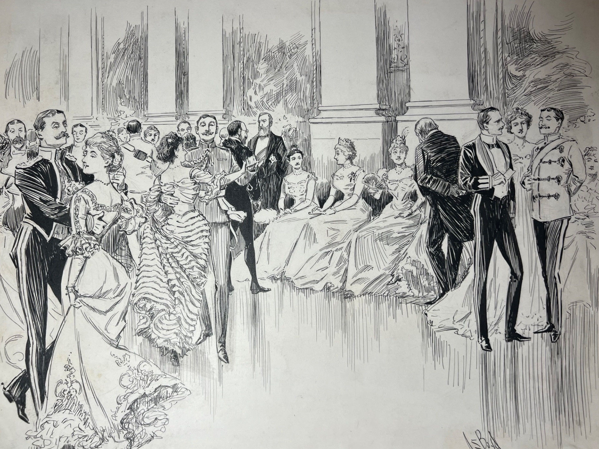 The Representatives of Greater Britain. The United Empire and Victoria Leaguers' Ball: a pen and ink sketch for The Graphic