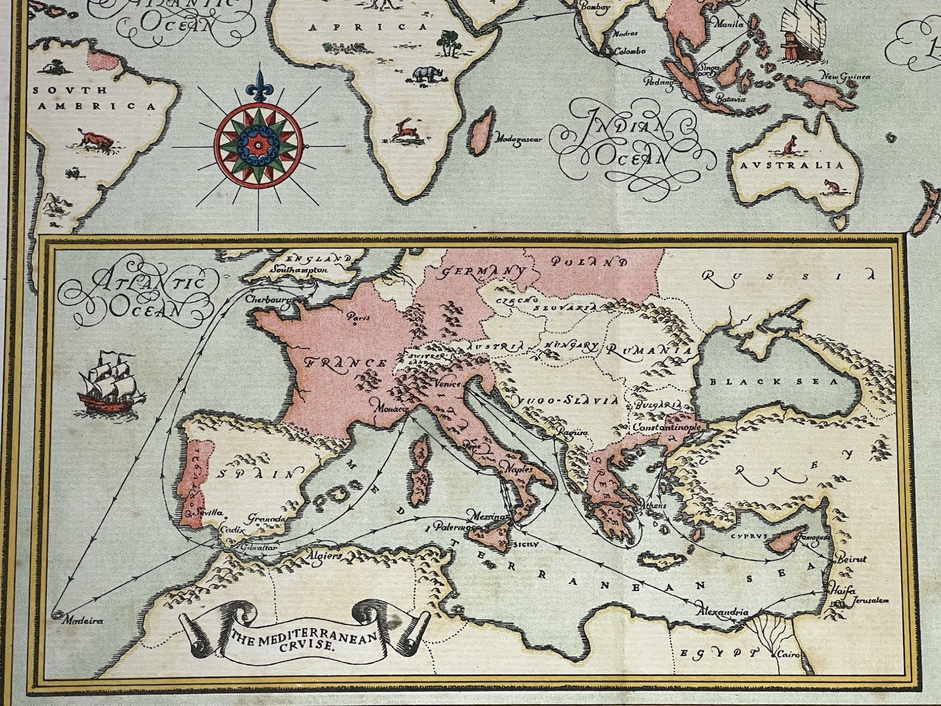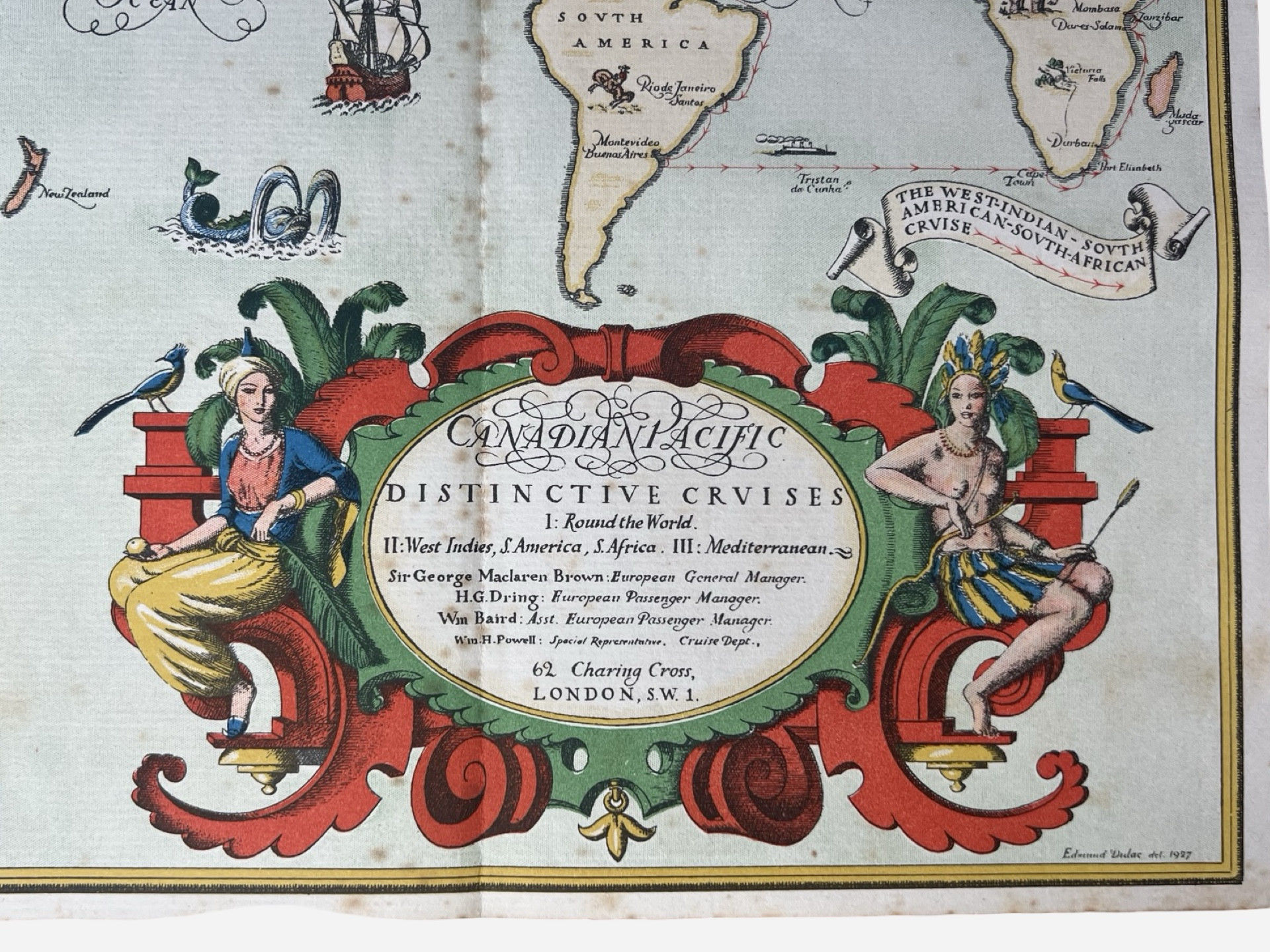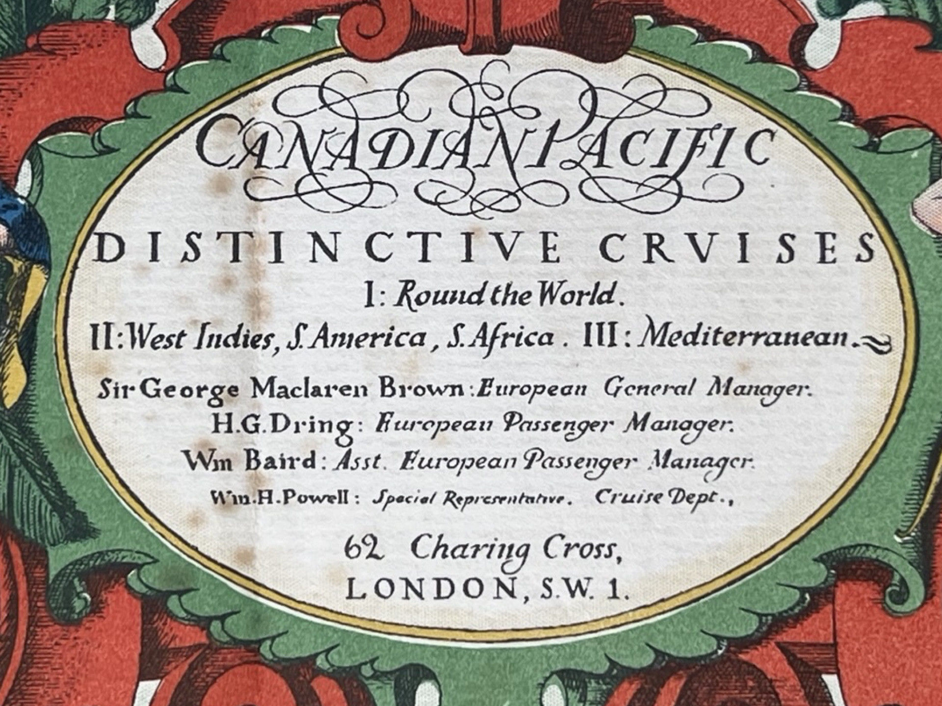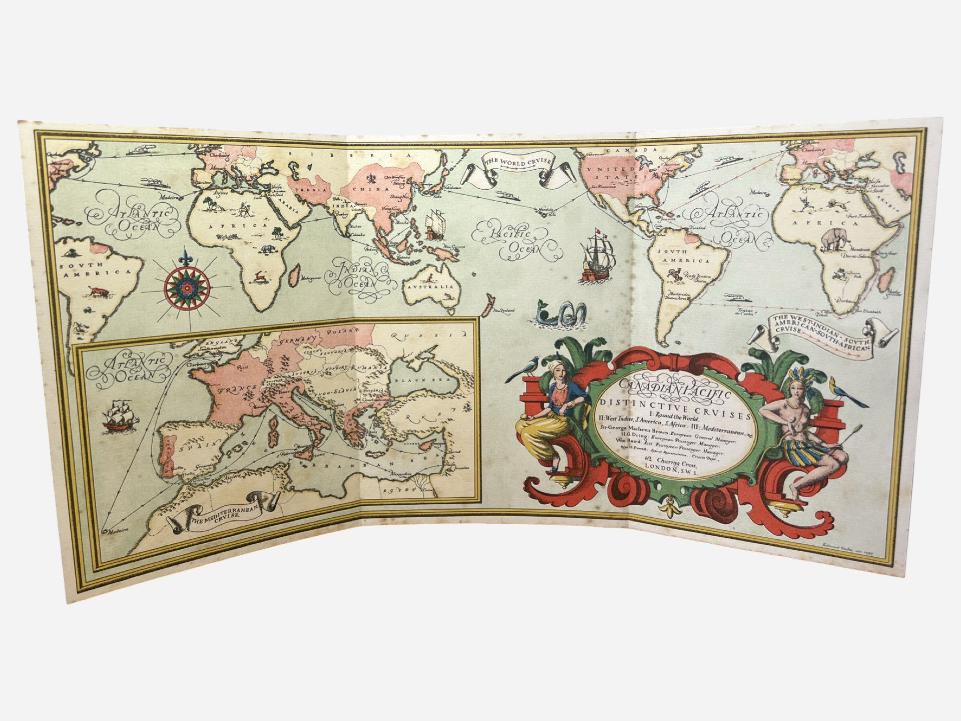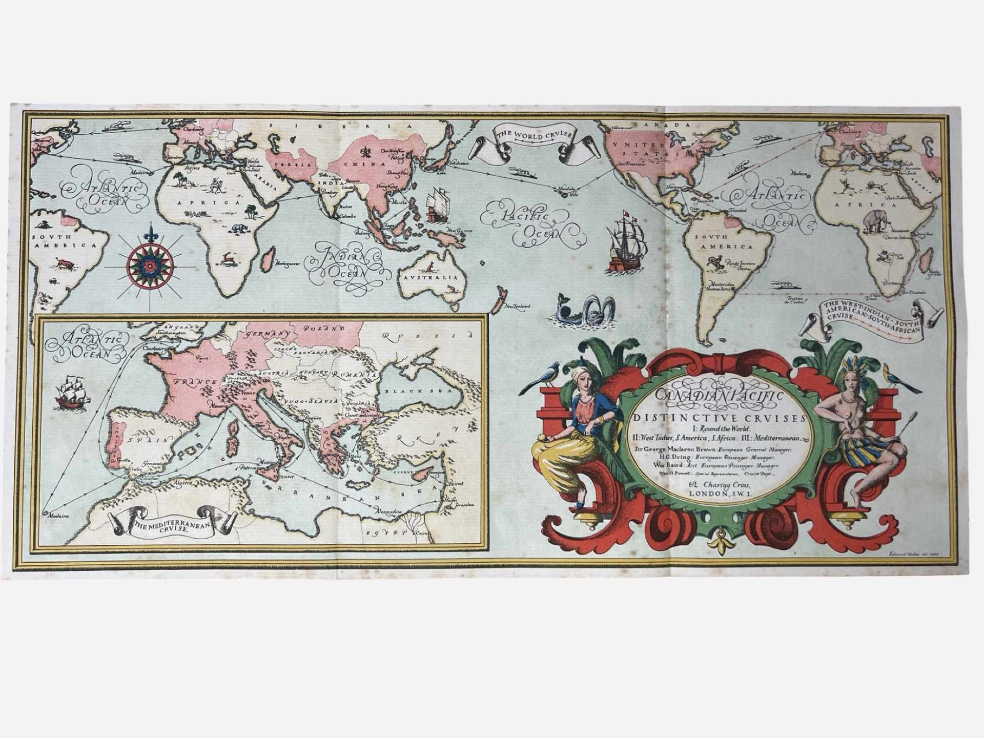 Promotional lithographed map for Canadian Pacific Distinctive Cruises