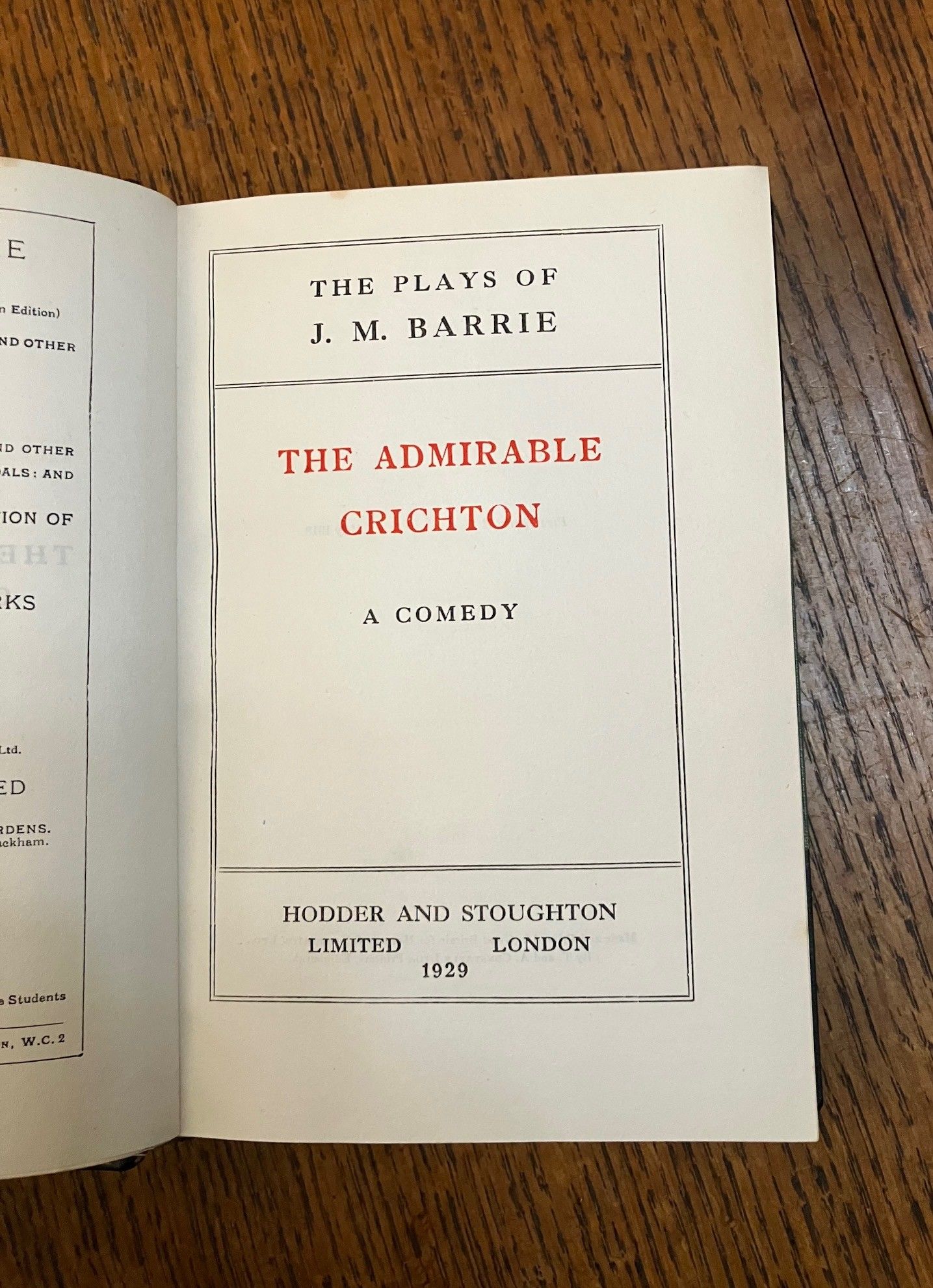 THE ADMIRABLE CHRICHTON, bound with: THE TWELVE-POUND LOOK. From the uniform edition of the Works of J. M. Barrie