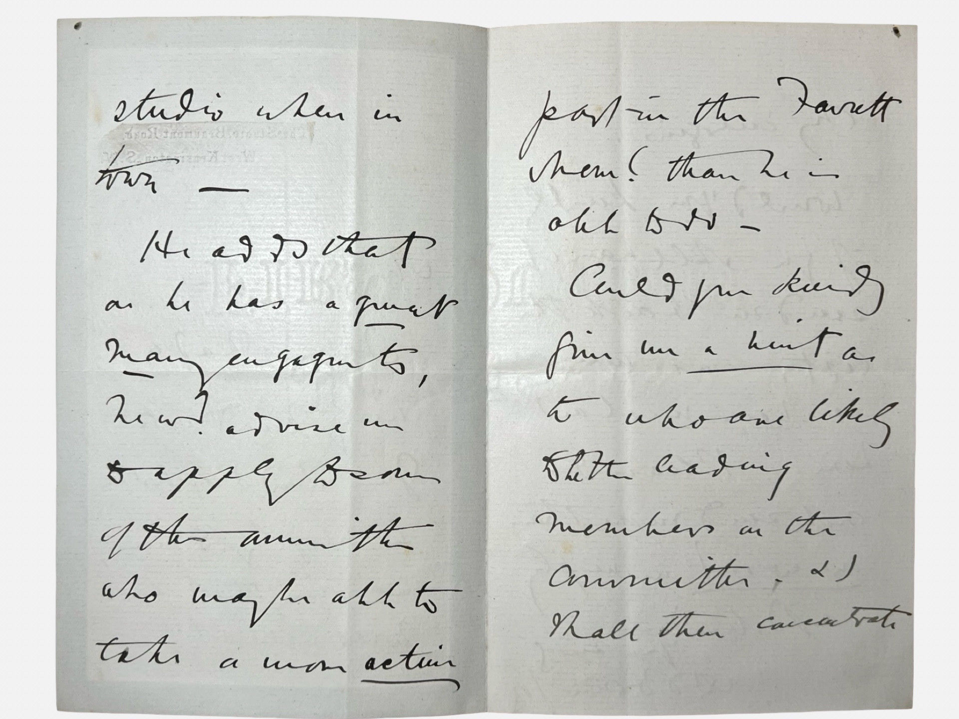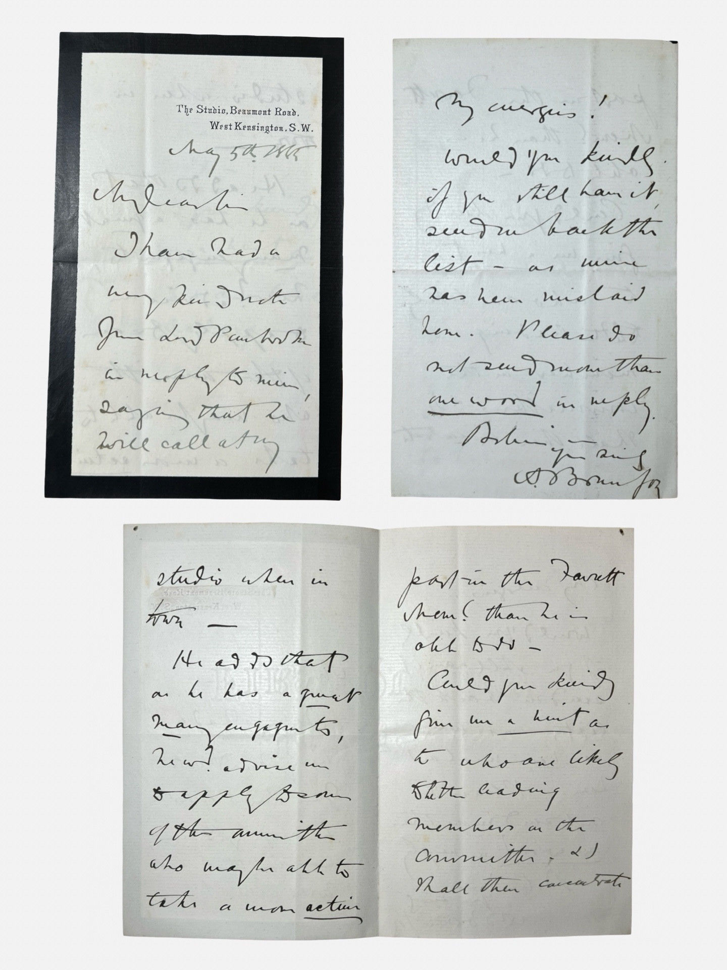 Autograph letter signed by sculptor Albert Bruce-Joy (1842-1924) about the Henry Fawcett Memorial