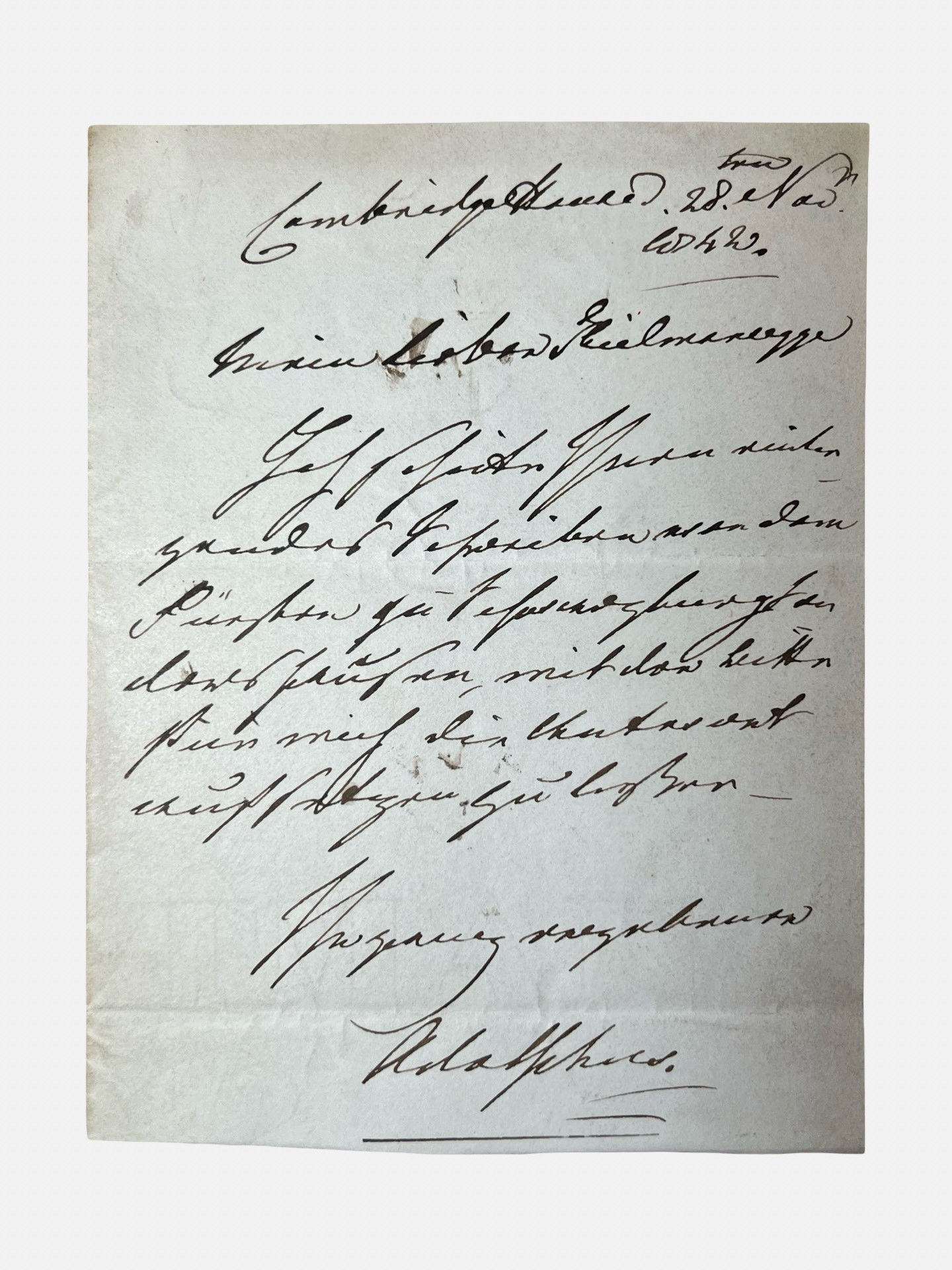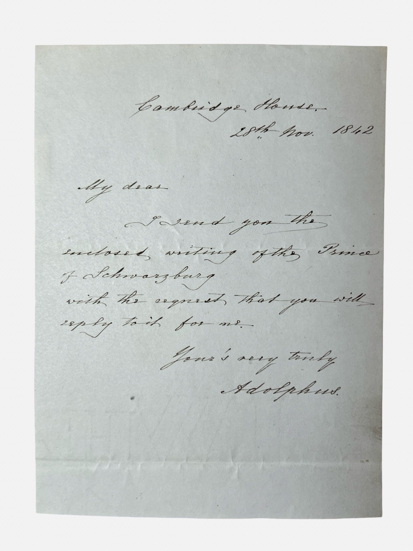 Autograph letter signed by Prince Aldolphus (1774-1850), Queen Victoria's uncle and seventh son of George III