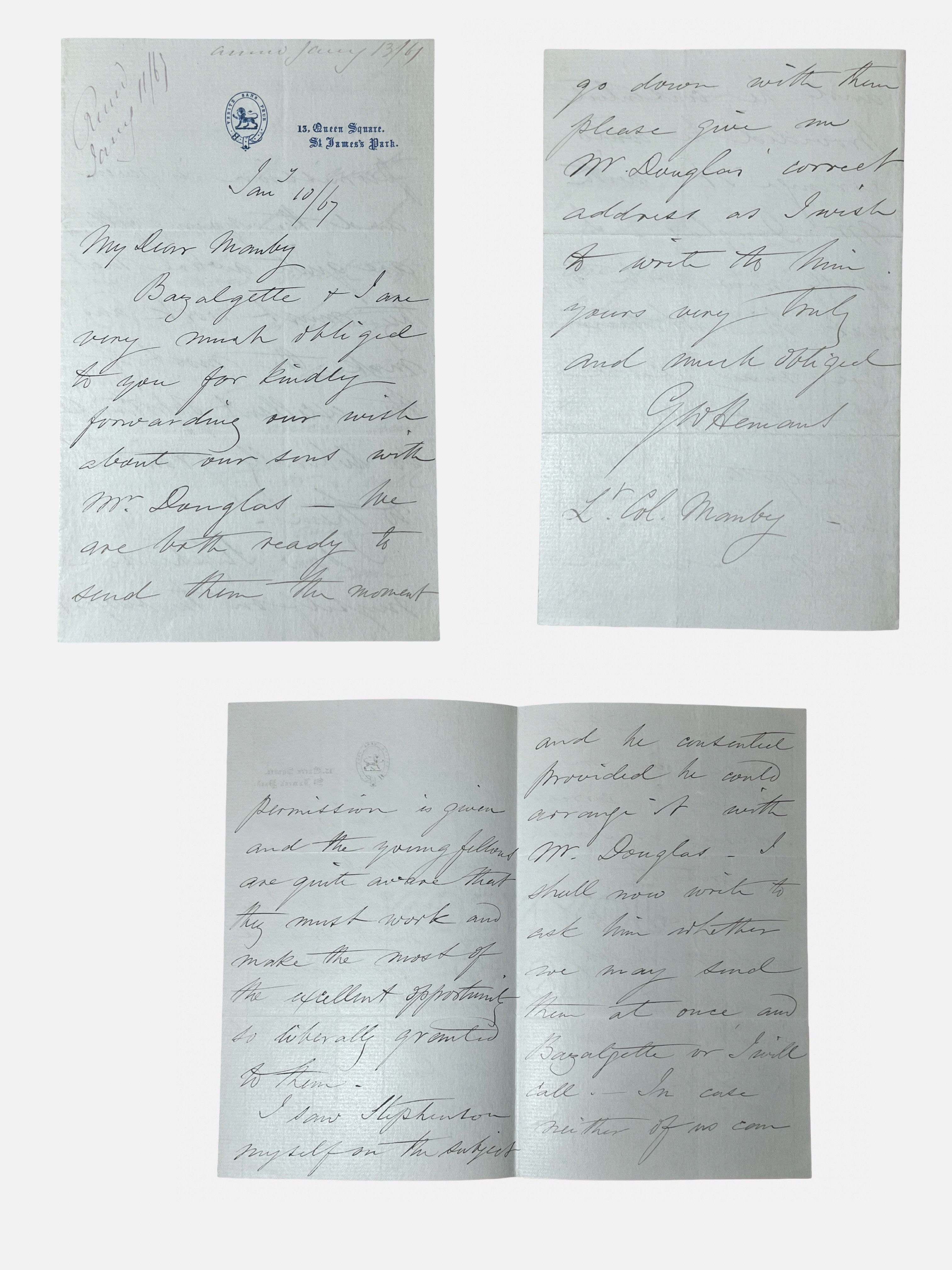 Autograph letter signed by engineer George Willoughby Hemans (1814-1885), involving Sir George Bazalgette and George Robert Stephenson