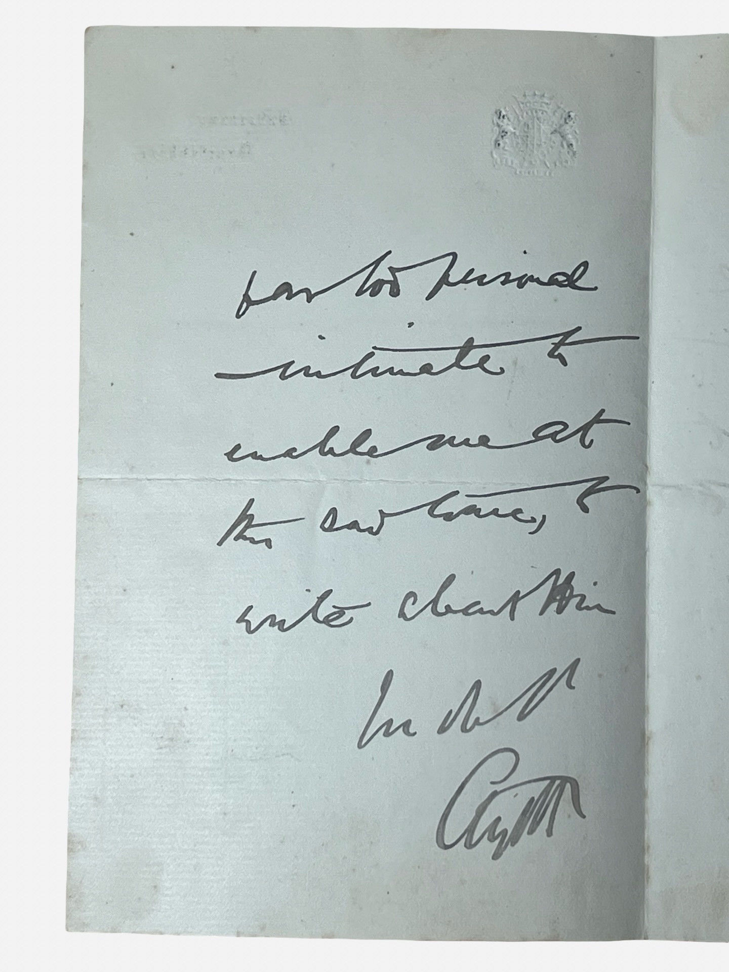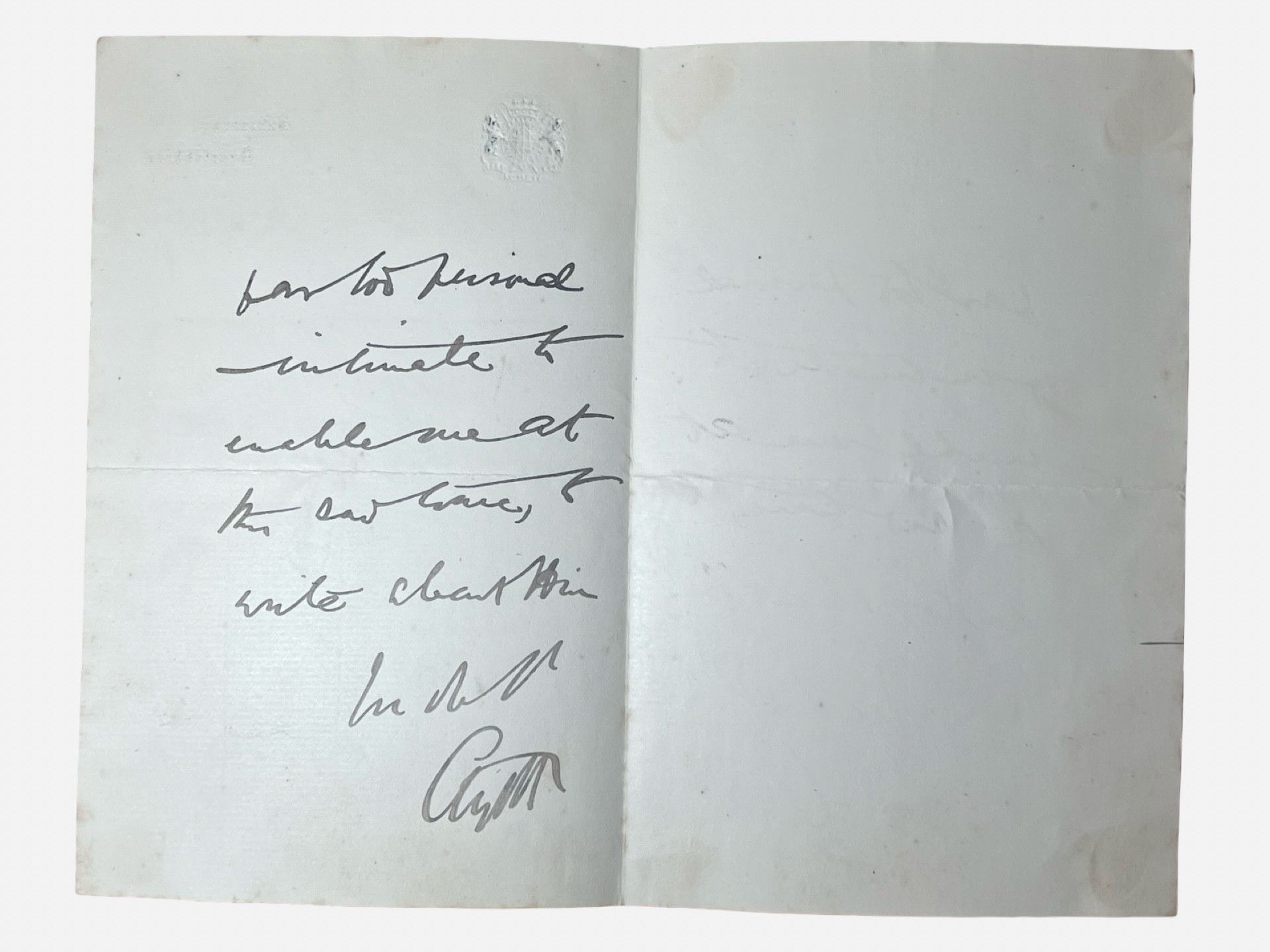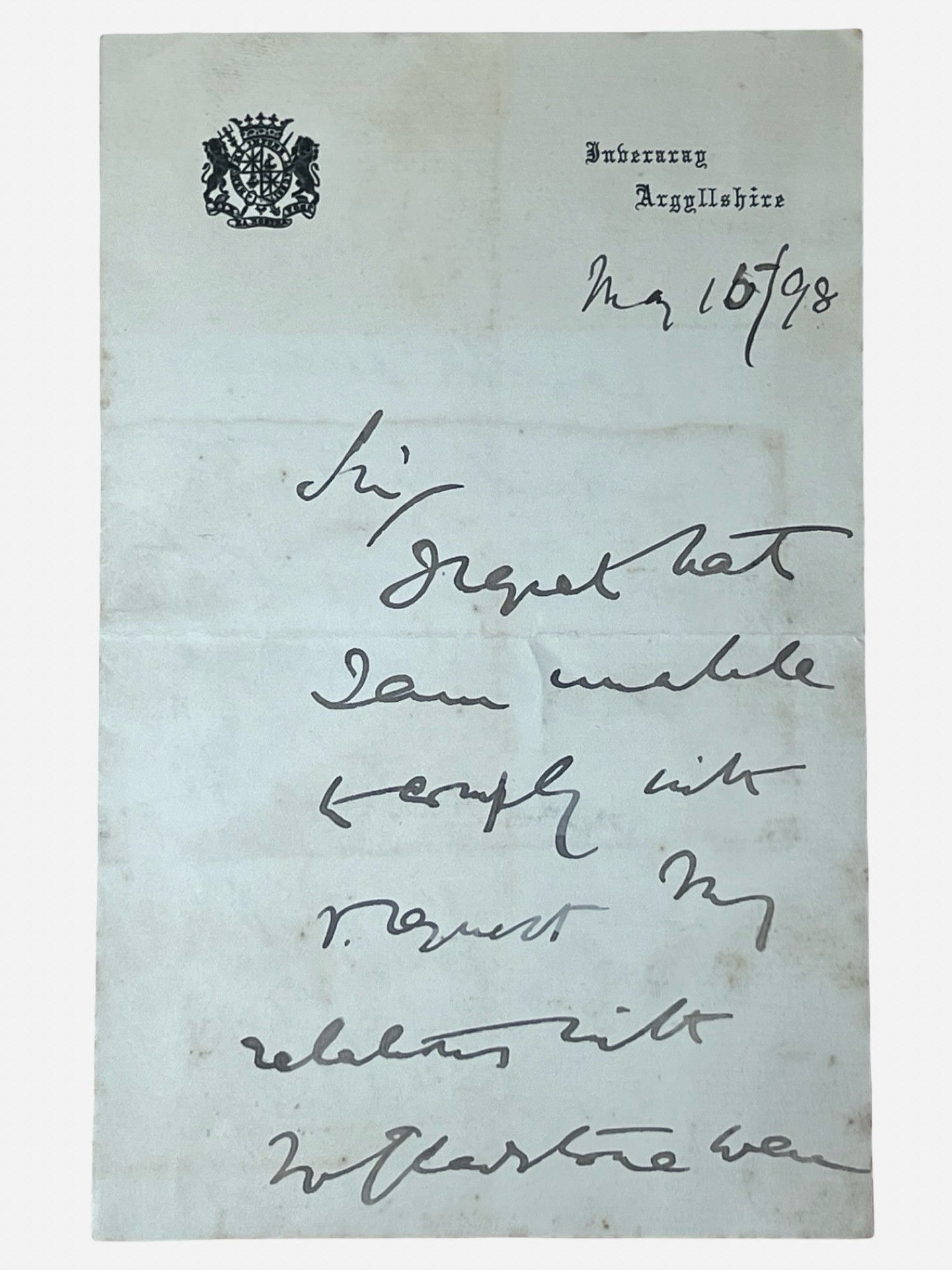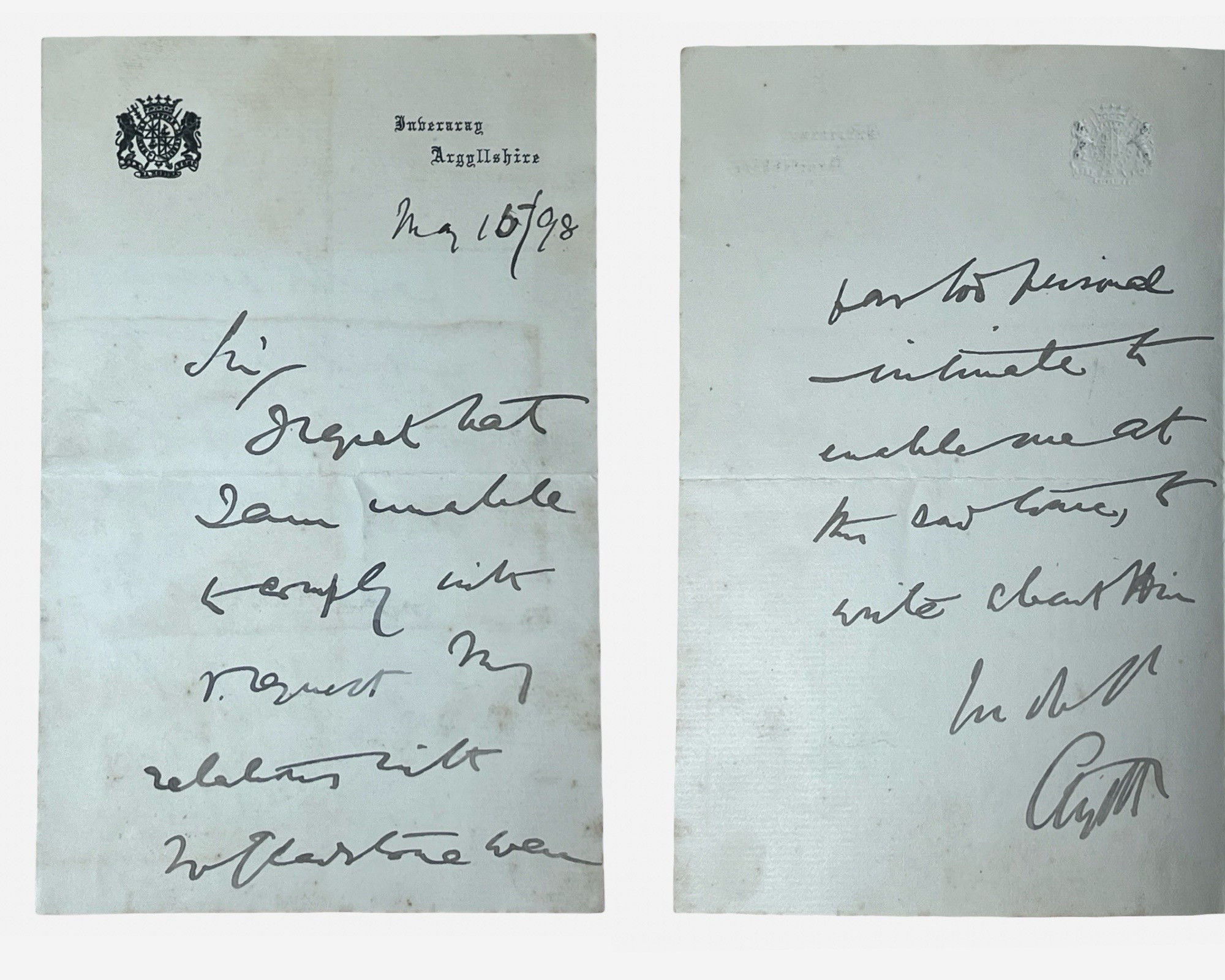 Autograph letter signed by Governor of Canada, John Campbell the 9th duke of Argyll (1807-1900) about the death of Prime Minister William Gladstone