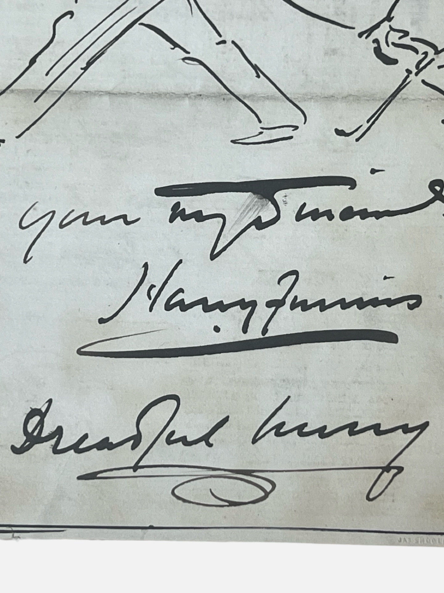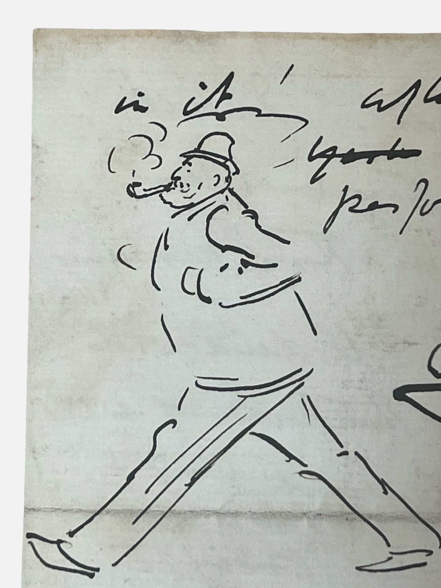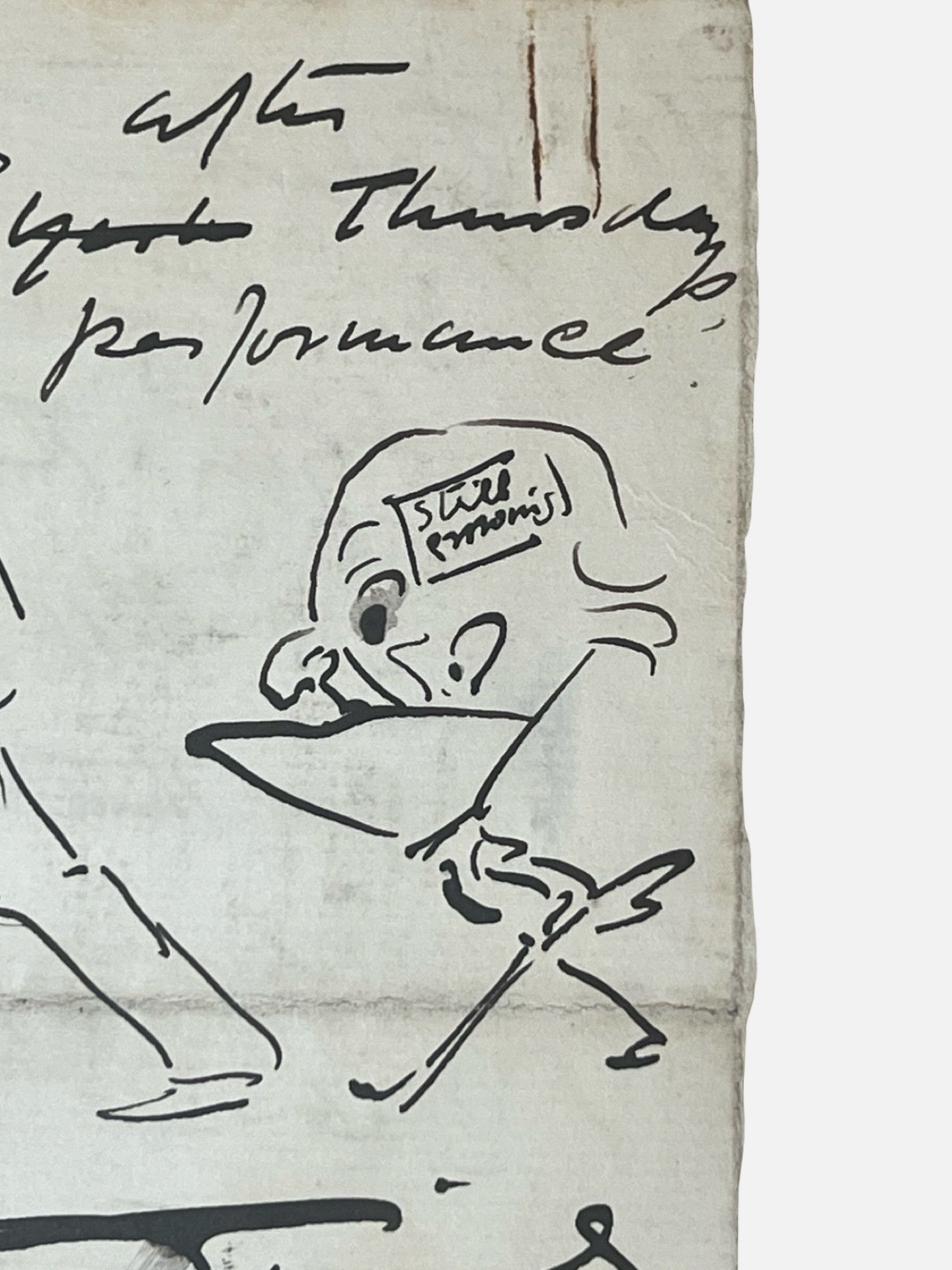 "Dreadful hurry" Autograph letter fragment with an original pen and ink sketch by Punch illustrator, Harry Furniss (