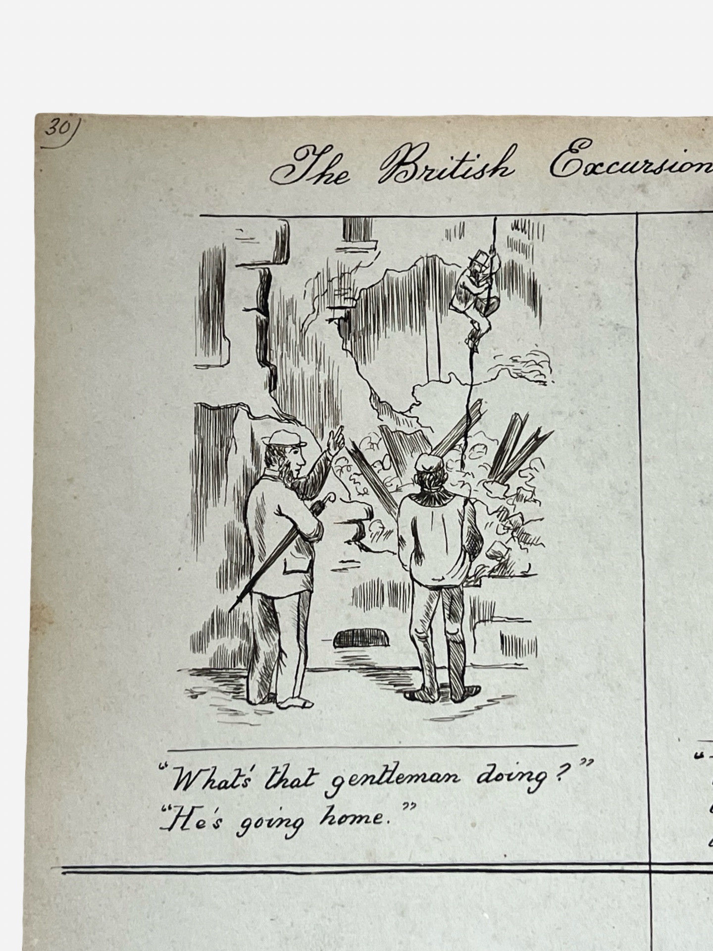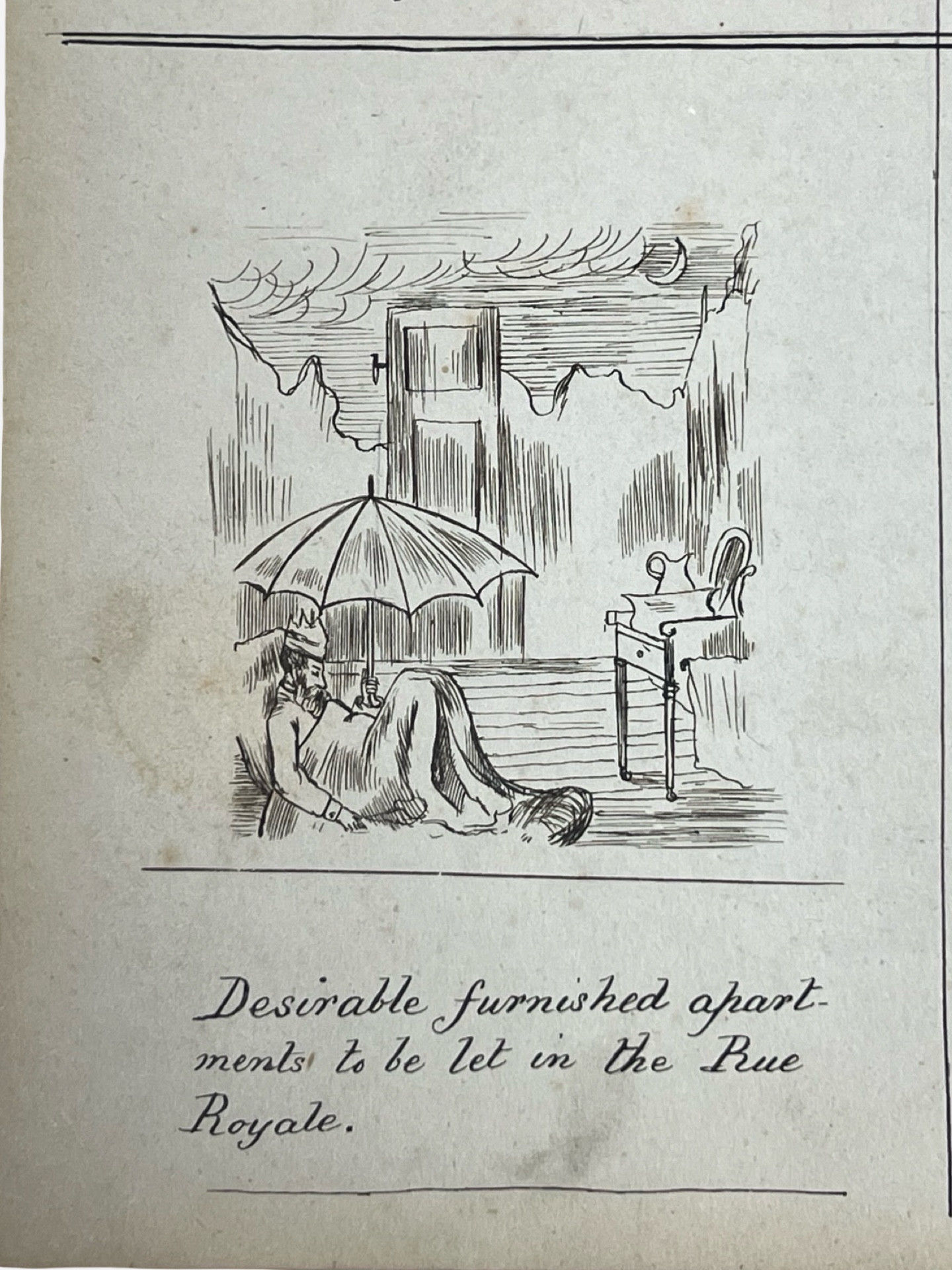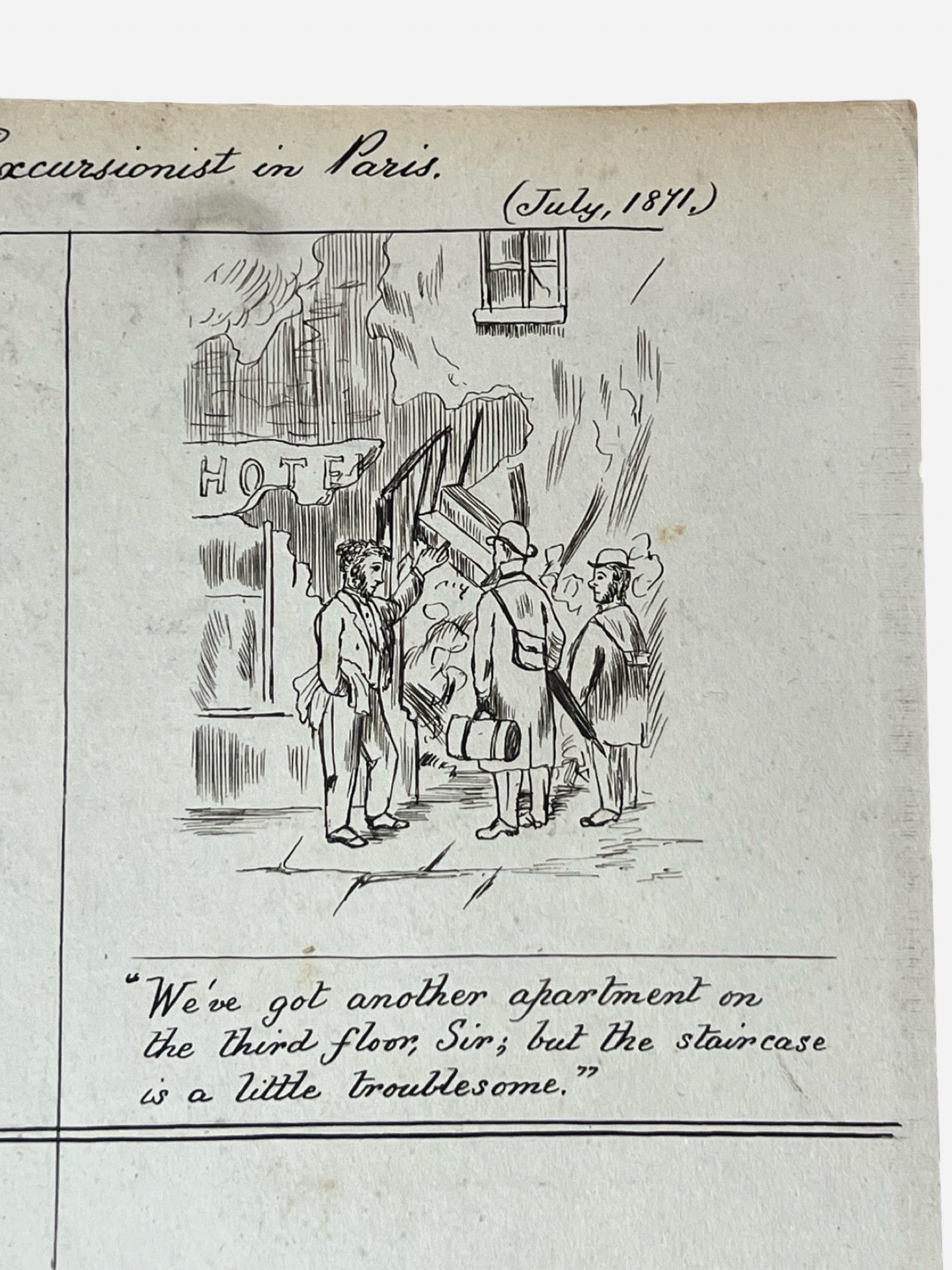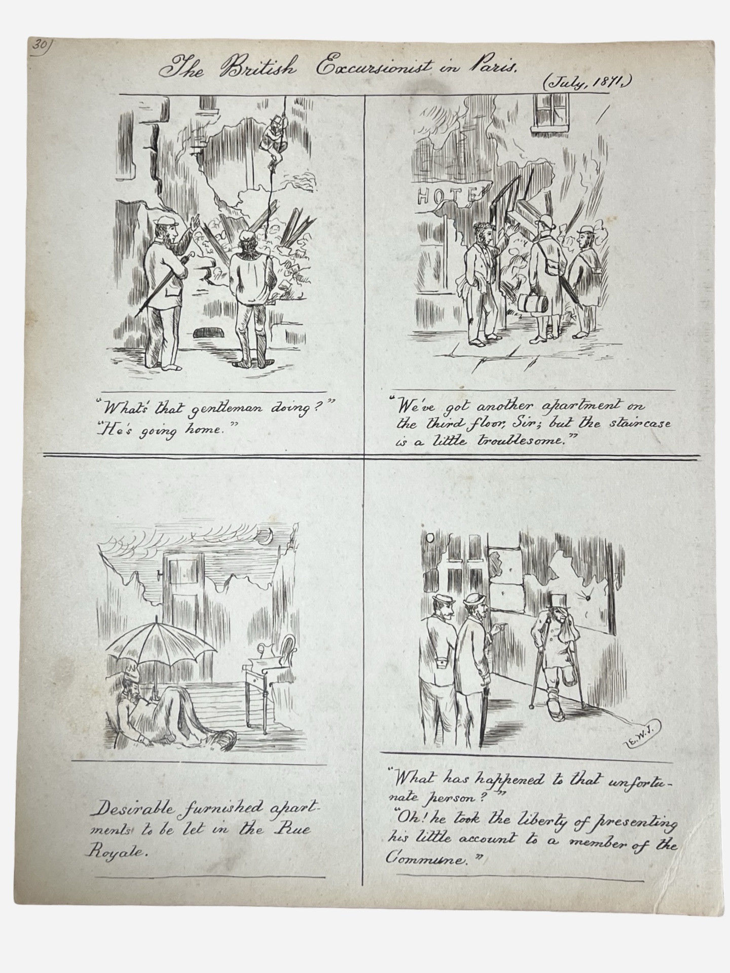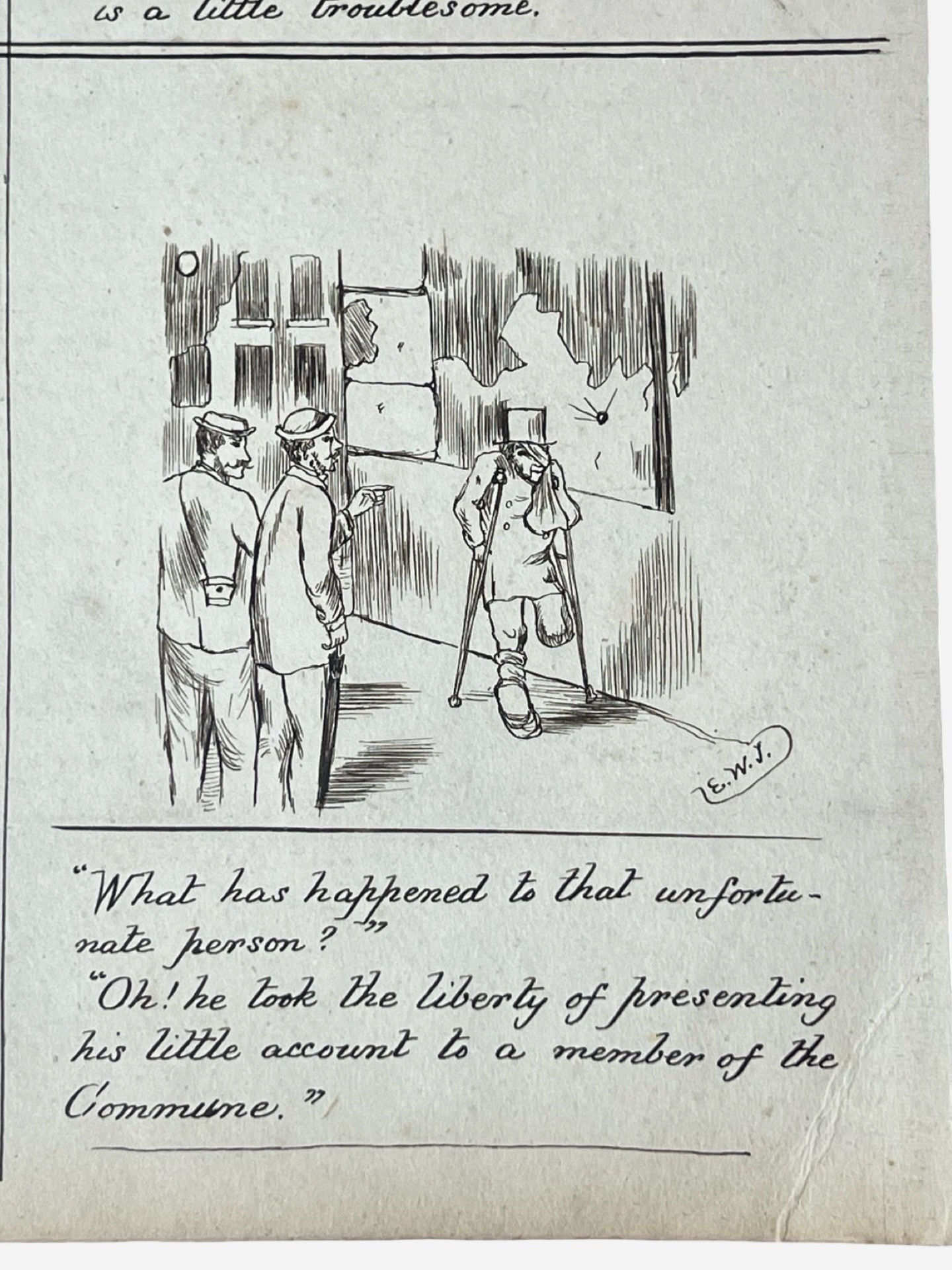 An amateur pen and ink sketch to do with the suppression of the Paris Commune, dated July 1871