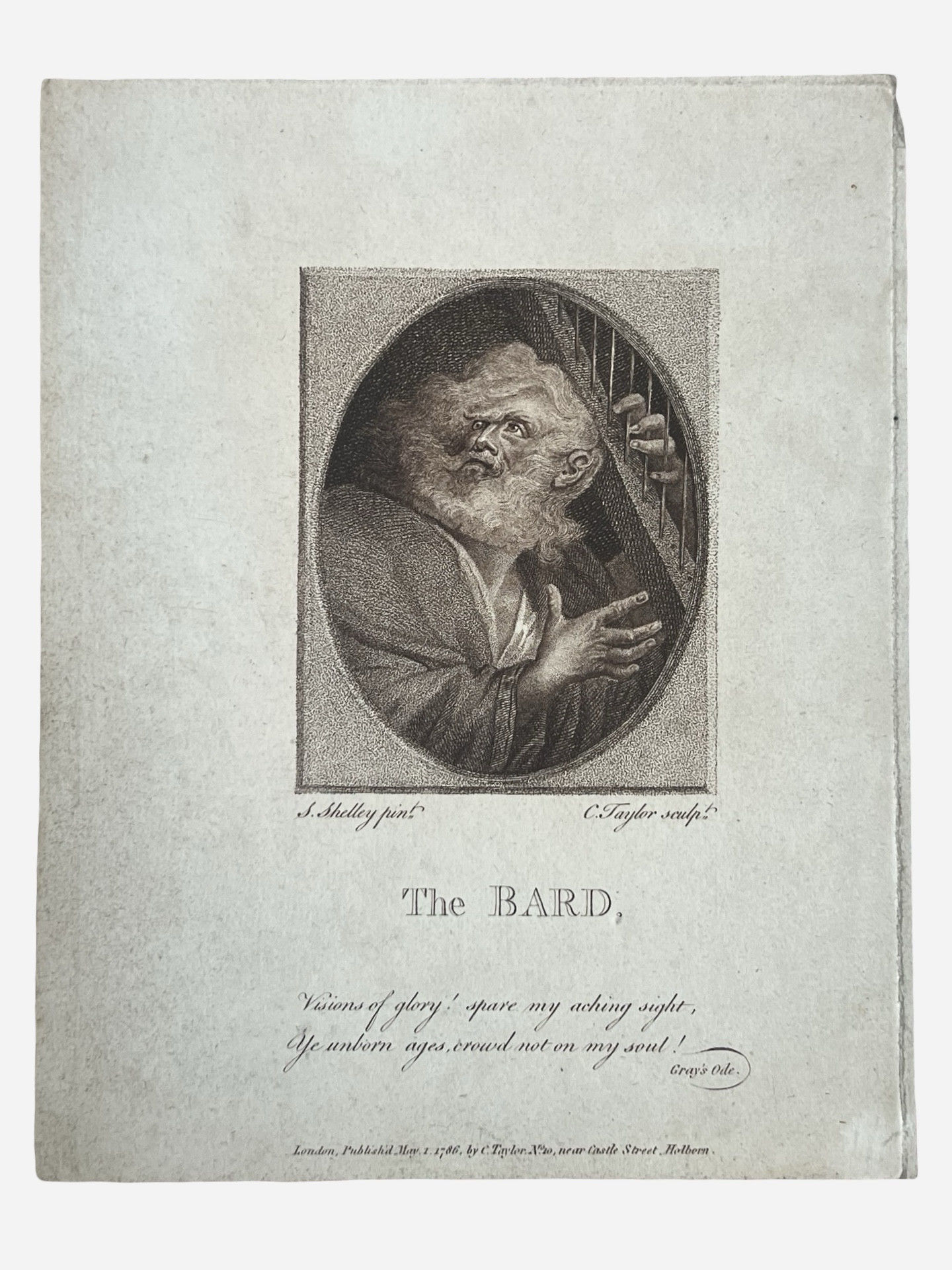 The Bard - a stipple engraving. About Thomas Gray's Ode 'The Bard'.