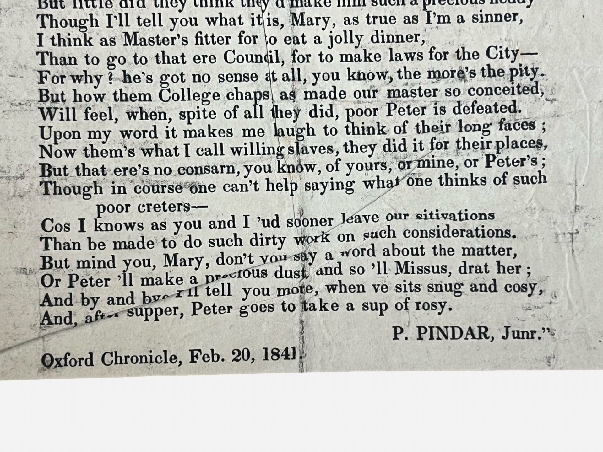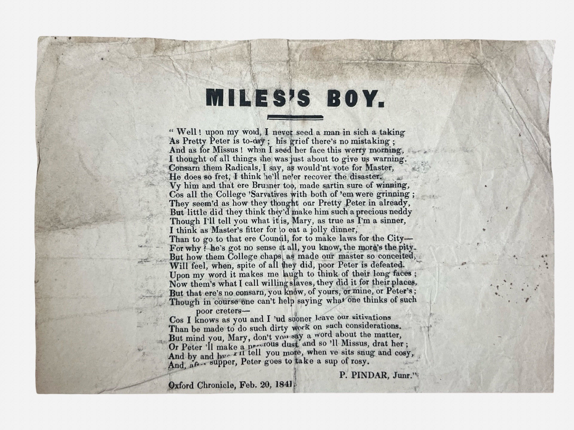 Miles's Boy: An Oxford Municipal Council satirical broadside dated 1841