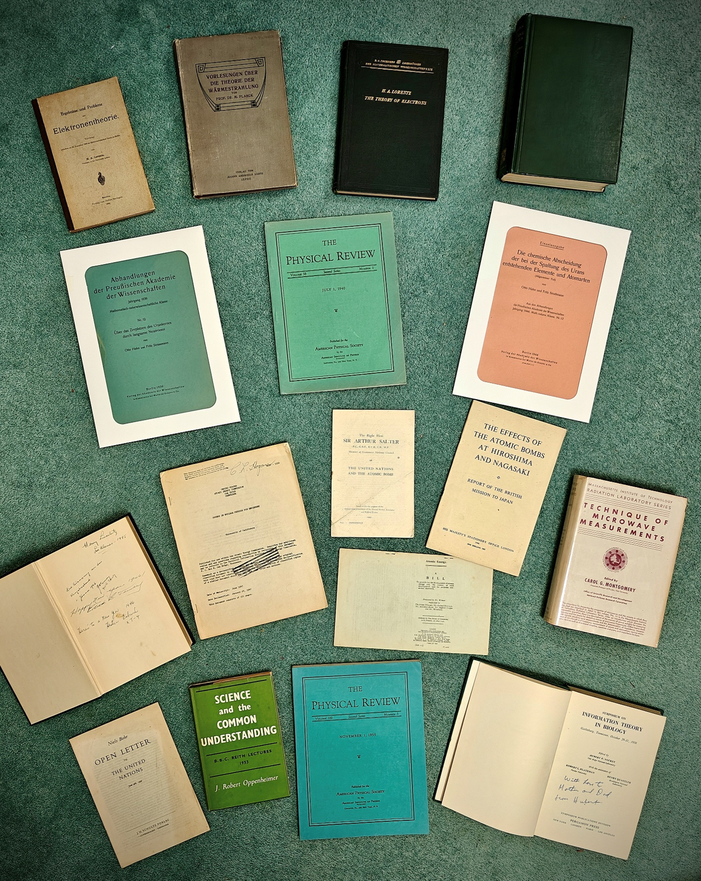 The collection now spans four phases: the innocent curiosity of pre-war inquiry; the dramatic turning point of fission’s discovery; the wartime shift to engineering and regulation; and finally, the divergent paths taken by scientists in the aftermath of Hiroshima and Nagasaki. Each item has been chosen not only for its intellectual significance but also for its human fingerprint, inscriptions, and provenance, which connect us to the lived experiences of those who shaped and were shaped by the atomic age. From Hahn and Strassmann’s original fission papers to one of my favourite items bearing Hubert Yockey’s tender inscription “with love to mother and dad,” these works speak in dialogue with one another, telling a story greater than the sum of their parts.